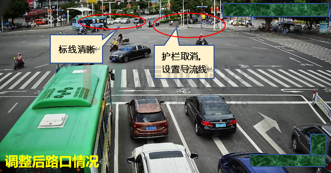 通過交通組織優(yōu)化,解決了右轉(zhuǎn)機(jī)動(dòng)車與直行非機(jī)動(dòng)車沖突的問題,提升路口整體通過效率。
