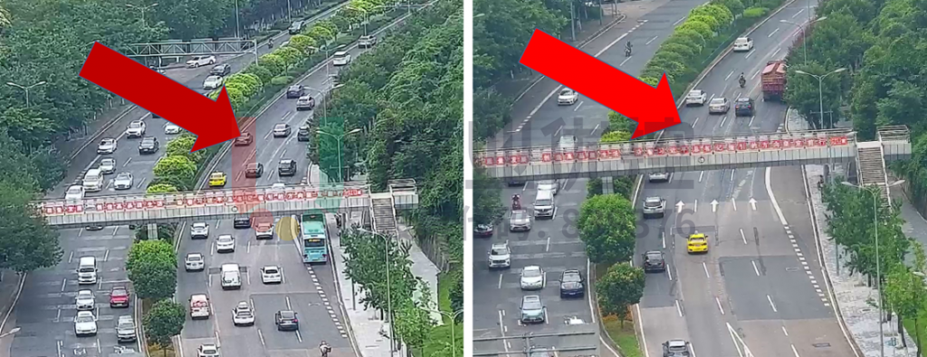 大型立交區(qū)域交通擁堵現象十分普遍,特別是各匝道口與主干道的匯流點,往往因車流交織而擁堵嚴重。本案例中,兩江交巡警與交通工程師通過全面分析擁堵點根源和道路可利用條件,實施兩大優(yōu)化措施,使道路資源和信號方案的利用率達到最大化。
