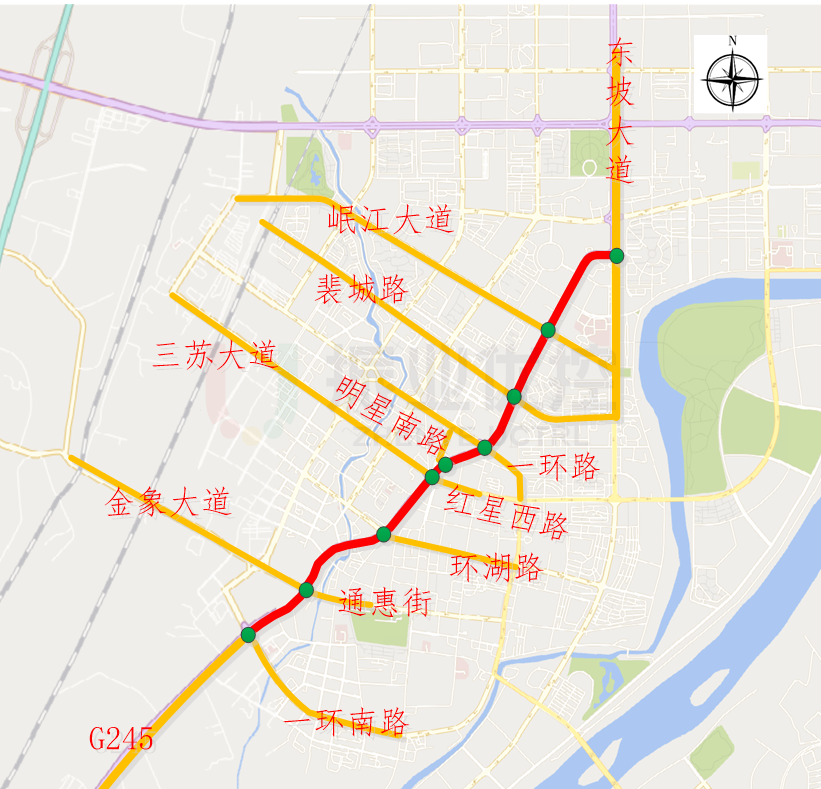 詩(shī)書路為南北走向,雙向4車道、沿線分布9個(gè)路口,北連東坡大道,南接G245國(guó)道,貫穿岷江大道、一環(huán)路、三蘇大道、紅星西路等橫向城市主干道,是眉山中心城區(qū)通往青神、樂山方向的主要通道之一。沿線有醫(yī)院、住宅區(qū)、商業(yè)區(qū)、旅游景區(qū)、學(xué)校等交通密集場(chǎng)所。