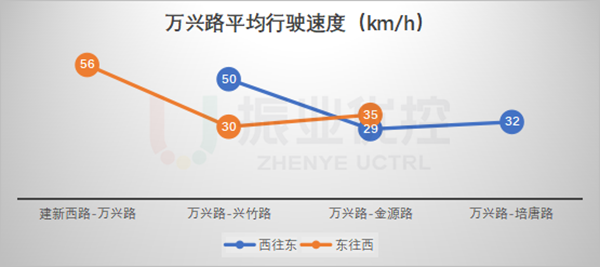 通過實地調(diào)研發(fā)現(xiàn),萬興路(建新西路-興竹路)大部分為隧道路段,通行環(huán)境良好、行車速度較快;萬興路(興竹路-金源路)路段通行環(huán)境較差且路段存在瓶頸,行車速度相對較慢。