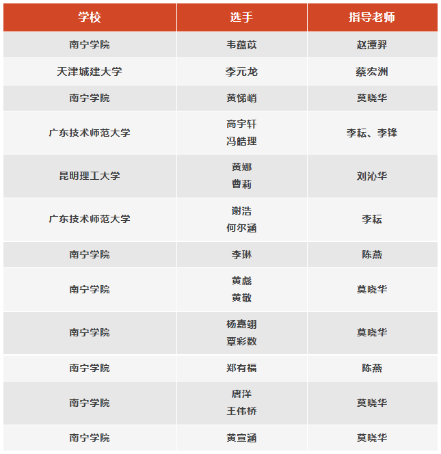 (以下為詳細(xì)隊伍名單,排序不分先后)