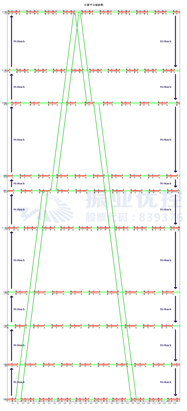 圖3 協(xié)調(diào)路段平峰綠波時距圖
