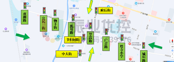 老城區(qū)受限于道路條件,車輛通行能力不足,因此采用綠波協(xié)調(diào)控制就是一種比較好的方法。綠波協(xié)調(diào)可以根據(jù)需要,快速清空城區(qū)車輛,減緩外圍車流駛入,有效均衡路網(wǎng)流量。本案例通過在老城區(qū)設置十字綠波,初步實現(xiàn)區(qū)域綠波效果,有效提升區(qū)域內(nèi)車輛通行效率,緩解區(qū)域擁堵問題。
