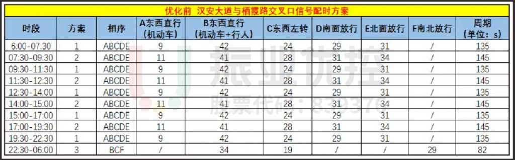 在可變車(chē)道實(shí)施之前,交叉口東西進(jìn)口方向直行和左轉(zhuǎn)分開(kāi)單獨(dú)放行,導(dǎo)致東進(jìn)口左轉(zhuǎn)排隊(duì)較長(zhǎng)。對(duì)此采取搭接一個(gè)東進(jìn)口單獨(dú)放行相位,保障方案實(shí)施后車(chē)輛進(jìn)入可變車(chē)道后能夠及時(shí)清空,以及左轉(zhuǎn)車(chē)流的通行安全。