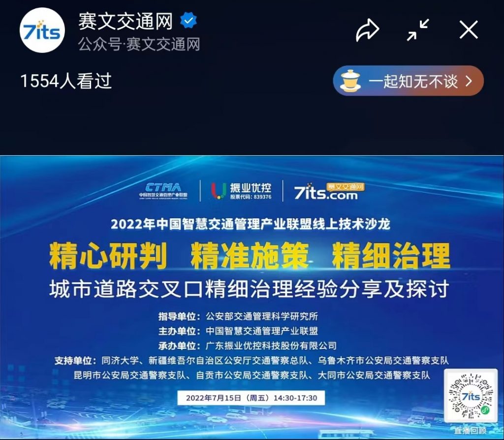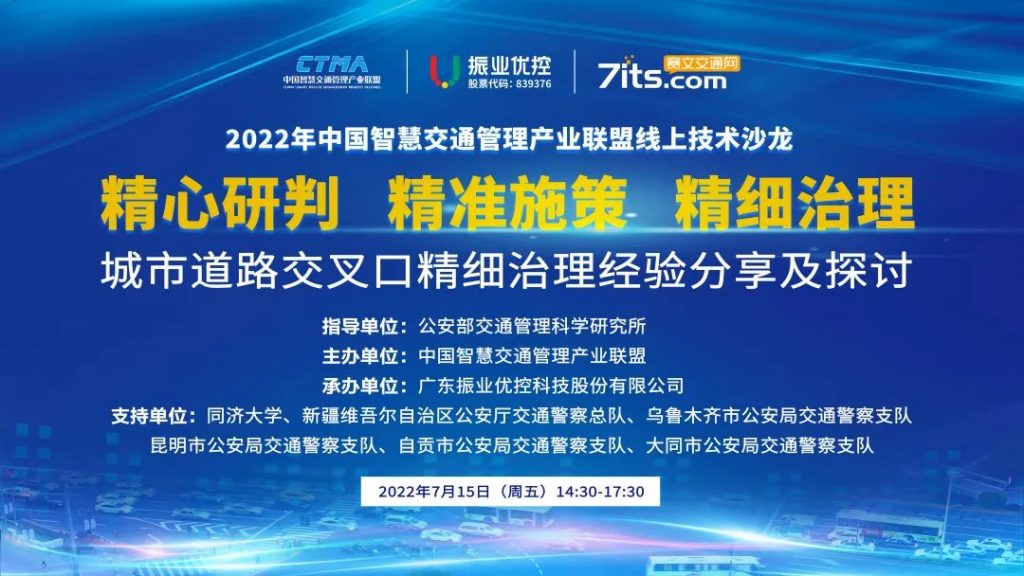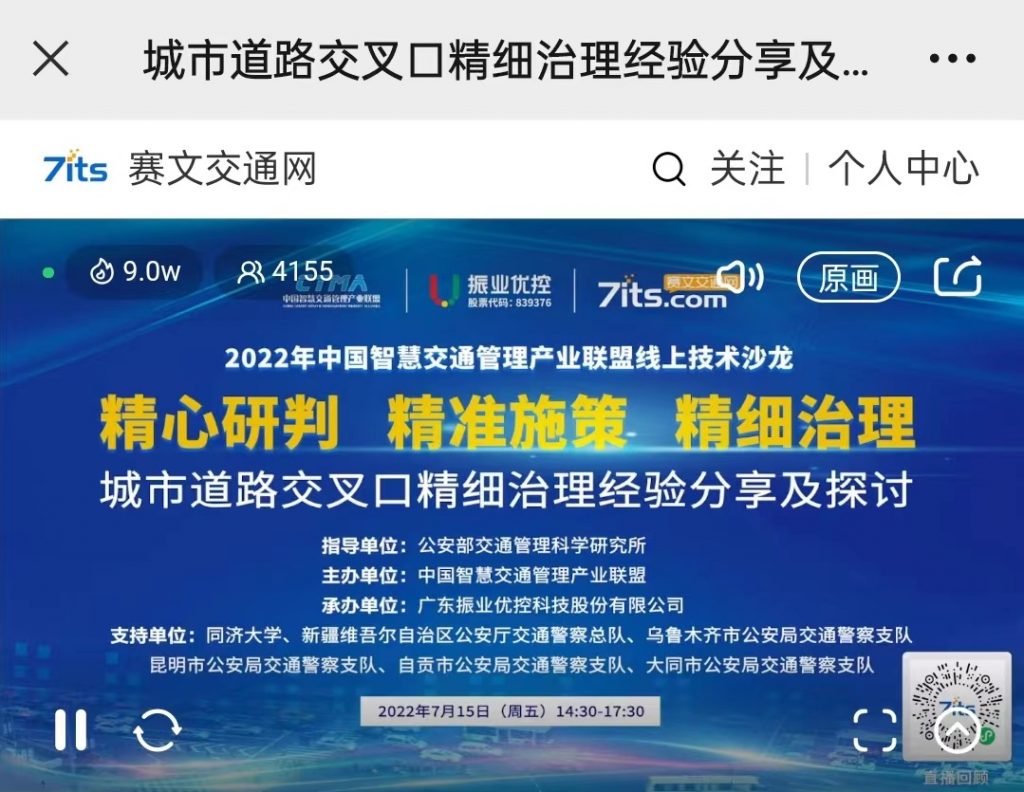 2022年7月15日,由公安部交通管理科學(xué)研究所(以下簡稱“交科所”)指導(dǎo),中國智慧交通管理產(chǎn)業(yè)聯(lián)盟(以下簡稱“產(chǎn)業(yè)聯(lián)盟”)主辦,產(chǎn)業(yè)聯(lián)盟交通規(guī)劃與設(shè)計組組長單位廣東振業(yè)優(yōu)控科技股份有限公司(以下簡稱“振業(yè)優(yōu)控”)承辦,主題為“精心研判 精準施策 精細治理”的城市道路交叉口精細治理經(jīng)驗分享及探討線上技術(shù)沙龍在賽文直播平臺成功舉辦。