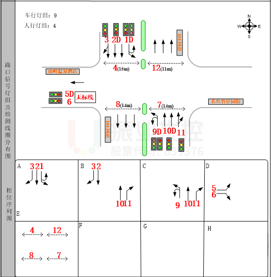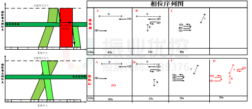 本次優(yōu)化主要是解決東進(jìn)口北往南行人過街不連續(xù),導(dǎo)致等待時(shí)間長的問題。交通工程師根據(jù)現(xiàn)場采集到的路口信息,在保證原有路口機(jī)動(dòng)車通行效率不下降的情況下,設(shè)置行人過街雙向協(xié)調(diào)的控制方式。