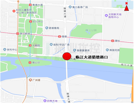 臨江大道-獵德大道路口位于天河區(qū),為十字形路口。臨江大道為東西走向主干道,東接華南大橋,西接廣州大橋。該路口高峰時(shí)段東西方向?yàn)橹饕飨?,車流量大、車輛排隊(duì)時(shí)間長,路段時(shí)有擁堵發(fā)生。