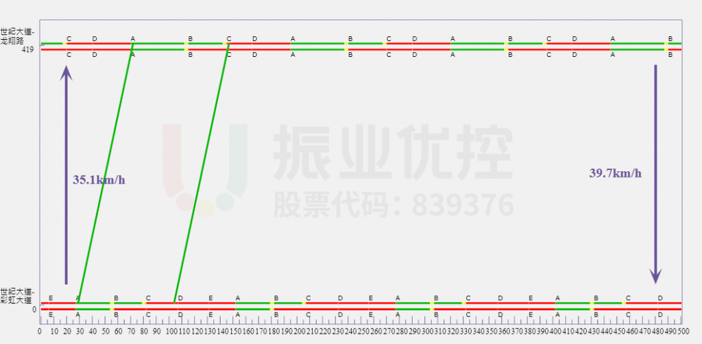針對這種情況,可以通過對距離較短的路口,實(shí)現(xiàn)短距離路口協(xié)調(diào);通過綠波軟件工具,計(jì)算其相位差,實(shí)現(xiàn)高峰期短協(xié)調(diào),達(dá)到減少車流排隊(duì)、防止車流溢出的同時(shí),提高行車體驗(yàn)的目標(biāo)。