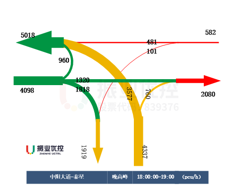 中陽(yáng)泰星路口東往西方向隨著道路施工完畢,交通條件得到改善,東往西車(chē)流量明顯增加,原來(lái)的配時(shí)方案已無(wú)法滿(mǎn)足車(chē)流量的變化,晚高峰東往西方向存在明顯擁堵,車(chē)輛需排隊(duì)4-5次通過(guò)路口。
