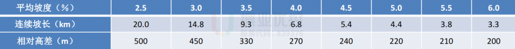二級、三級、四級公路長下坡路段,是指相對高差為200m-500m時,平均縱坡大于5.5%的路段;或者相對高差大于500m時,平均縱坡大于5%的路段。還包括,任意連續(xù)3km路段的平均縱坡大于5.5%的。