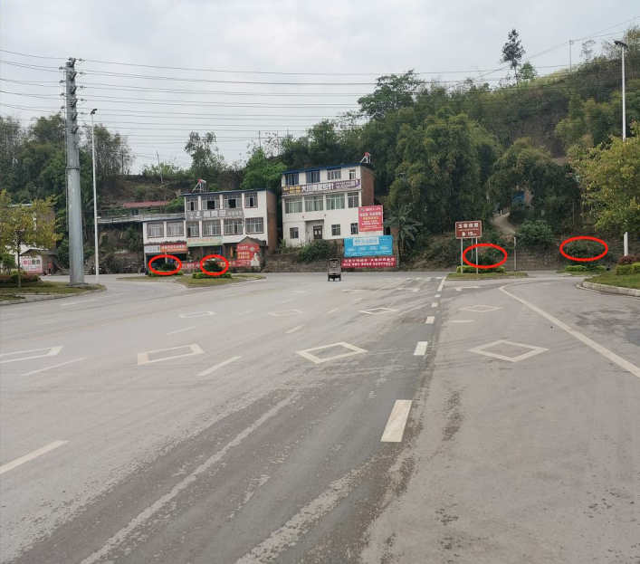 1.行車視線受到標(biāo)志牌、綠植和房屋等遮擋的。