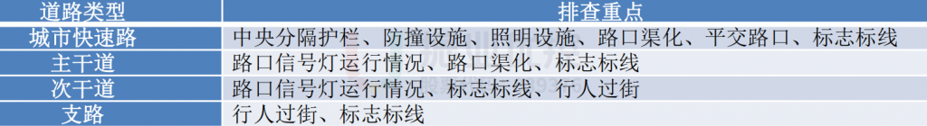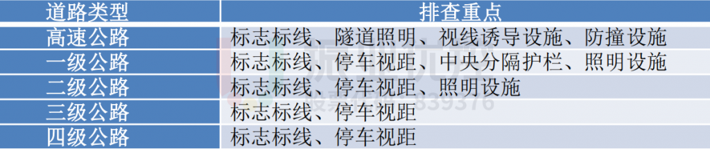 其一,公路行車條件中,重點排查路側(cè)險要、路段是否存在視距不良、路面質(zhì)量是否符合要求。