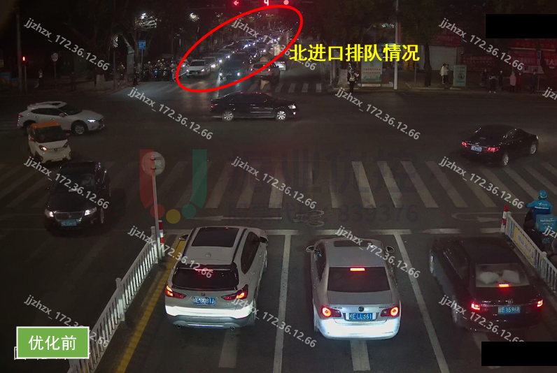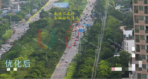 優(yōu)化效果:北往南直行車輛排隊(duì)情況、左轉(zhuǎn)空放情況得到緩解,通行情況明顯改善。