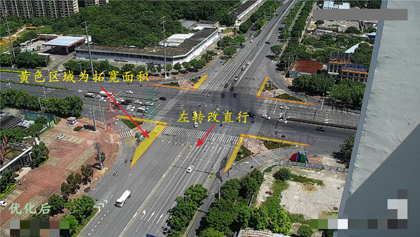 通過增加右轉(zhuǎn)專用車道,有效解決右轉(zhuǎn)車輛通行不順暢的問題,提升路口通行效率。