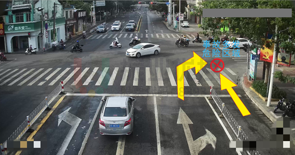優(yōu)化效果:大型運(yùn)輸車右轉(zhuǎn)時(shí),無論有無機(jī)動(dòng)車或行人通過,都必須停車瞭望,減少事故的發(fā)生;過往非機(jī)動(dòng)車在臨近紅色警示區(qū)域時(shí)注意謹(jǐn)慎通行,起到事故預(yù)防的作用。