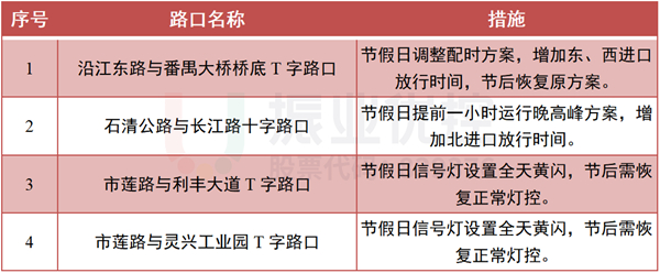 根據(jù)往年轄區(qū)交通出行規(guī)律,春節(jié)假期前后一周會呈現(xiàn)明顯的節(jié)前出城返鄉(xiāng)、節(jié)后進(jìn)城返城交通流特征。針對此交通流特征,對進(jìn)出城區(qū)主干道沿江東路與番禺大橋橋底路口、石清公路與長江路路口、市蓮路與利豐大道路口、市蓮路與靈興工業(yè)園路口等4個重要節(jié)點路口設(shè)置節(jié)假日前后交通預(yù)案。