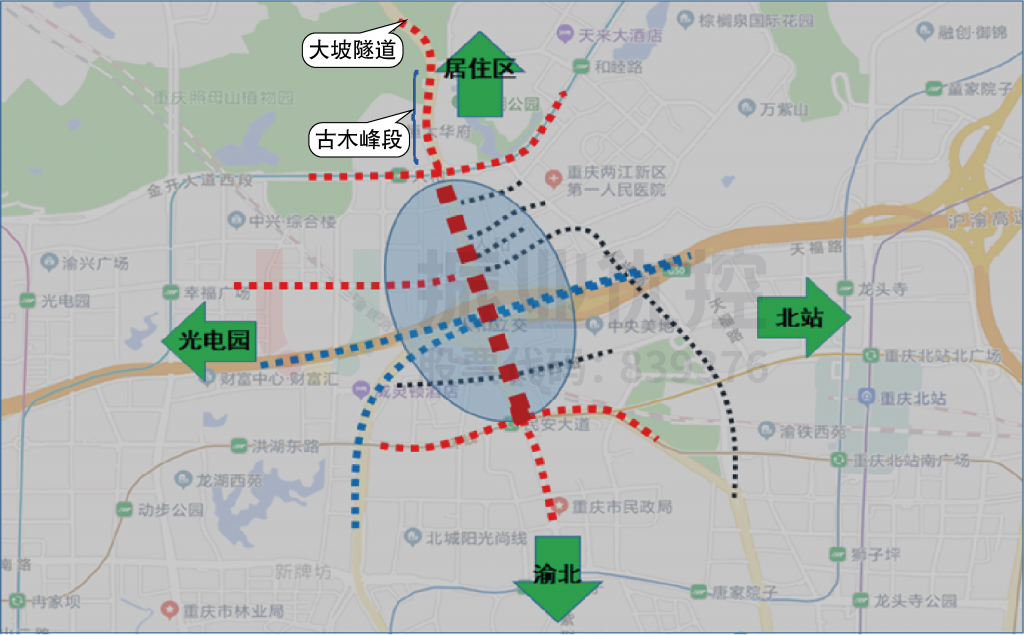 人和立交位于重慶市兩江新區(qū),連接五條主干道、四條支路及二條快速路,是聯通南北區(qū)域的重要通道。其中,人和立交橋至大坡隧道范圍日常交通通行量巨大,給周邊路段和路口帶來了巨大交通壓力。