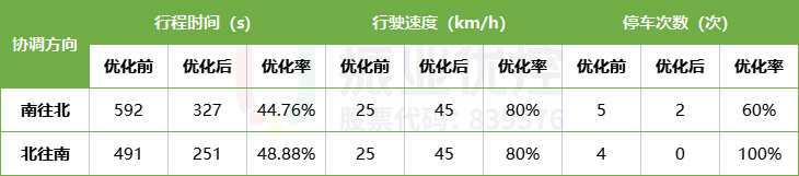 平峰時(shí)段,路段進(jìn)行雙向協(xié)調(diào),南北雙向總計(jì)停車兩次通過。