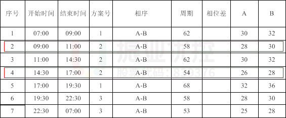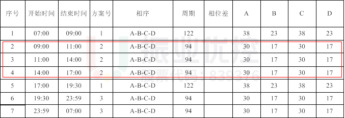 其中,長城路-耀目路交叉口原信號(hào)機(jī)配時(shí)方案平峰周期為94秒;長城路-學(xué)府路交叉口原信號(hào)機(jī)方案劃分了7個(gè)時(shí)段,且每個(gè)時(shí)段周期都不一樣,早平峰周期為58秒,午平峰為54秒。兩個(gè)路口早平峰周期相差36秒,午平峰周期相差40秒,周期相差較大。