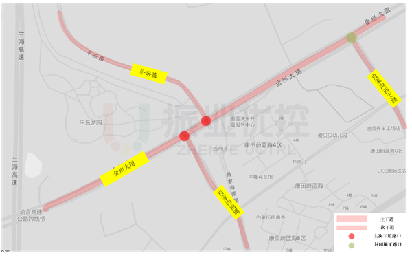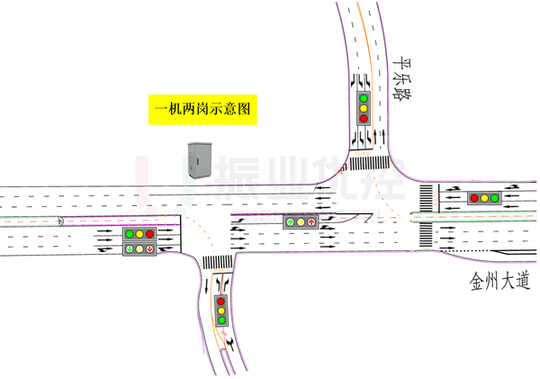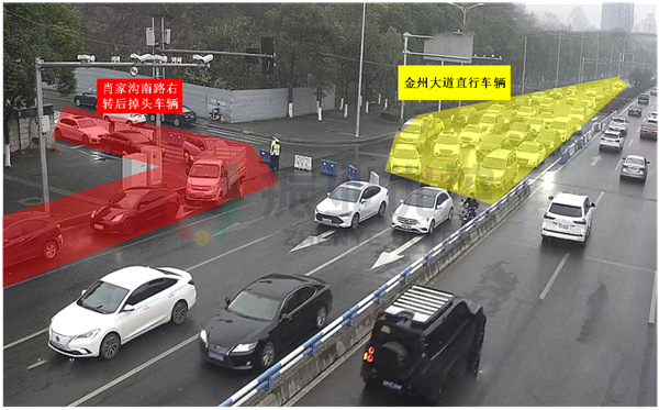 金州大道-肖家溝南路路口開通后,上下游路口使用“一機(jī)雙崗、協(xié)調(diào)聯(lián)動”的控制方式,把兩個路口看作整體,最大程度提高路口整體通行效率。