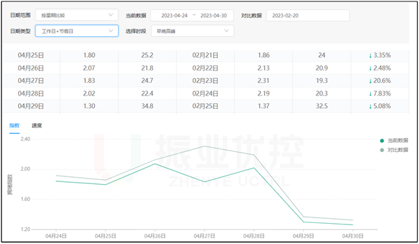 改造后,金州大道-平樂路路口通行能力得到大幅提升。高德數(shù)據(jù)平臺顯示,路口高峰擁堵指數(shù)周環(huán)比降幅明顯,最大環(huán)比下降20.6%。