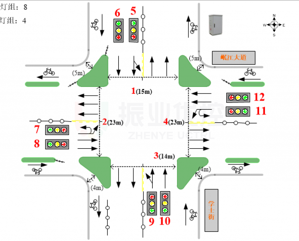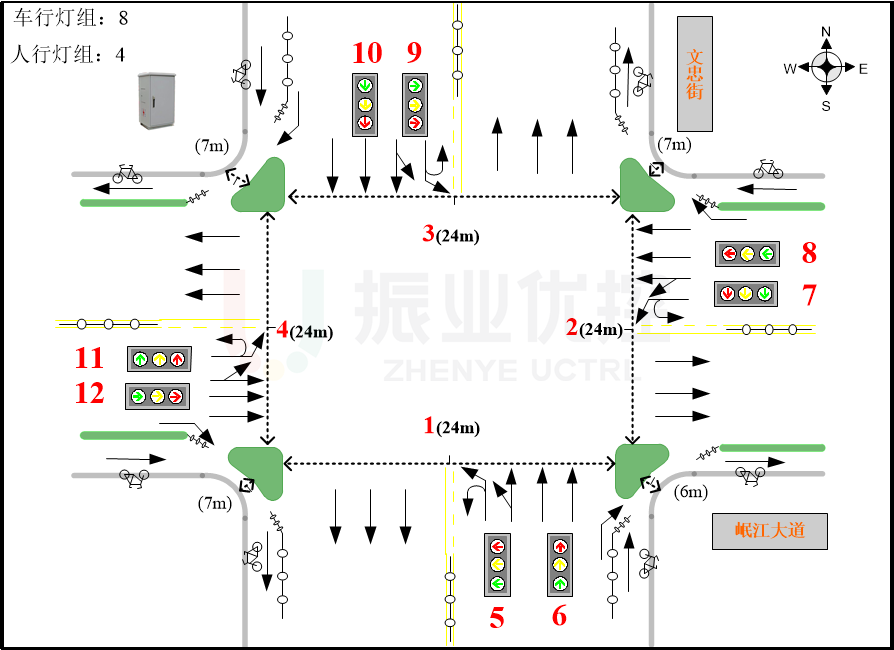 通過擴展西進(jìn)口左轉(zhuǎn)車道的方式,增加進(jìn)口道數(shù)量,將“2直1左”改為“3直1左”;并根據(jù)路口實際通行情況對信號配時進(jìn)行精細(xì)化調(diào)整。