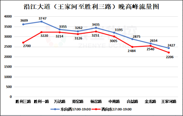- 晚高峰時(shí)段,中南路至勝利三路段進(jìn)出城流量均較大,雙向流量超過(guò)6000pcu,道路飽和度達(dá)0.72,道路服務(wù)水平達(dá)D級(jí)輕度擁堵水平。