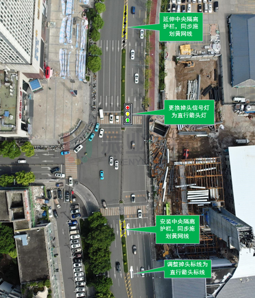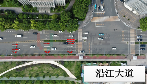 (2)清除沿江大道-江海路口雙向掉頭箭頭,改為直行箭頭,并同步更換路口車道標(biāo)識(shí)牌與信號(hào)燈。