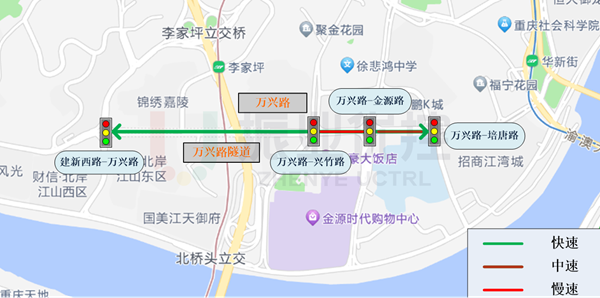 萬興路位于重慶市江北區(qū),全長約2.2公里,東向連接華福路,西向連接建新西路,是渝澳片區(qū)東西走向的主要通道。周邊分布有居民小區(qū)、學校、酒店、購物中心等交通吸引點,日常交通通行需求較大。