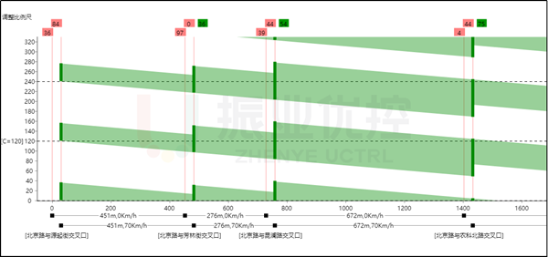 針對路段沿線信號燈設(shè)置過多、路口間距較近、路口實(shí)際通行需求差異大、行車速度不穩(wěn)定等問題,可以通過分析路段歷史車流數(shù)據(jù)和出行特征,精確定位關(guān)鍵路口,并通過相位相序調(diào)整、配時(shí)精細(xì)化管理來控制車流通行速度,減少路口停車次數(shù),實(shí)現(xiàn)不同時(shí)間段的行駛效果。