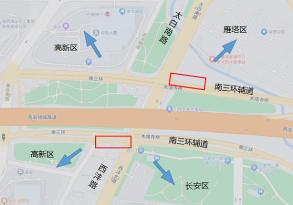 路口概況:西灃路與南三環(huán)輔道節(jié)點(diǎn)為典型的菱形立交。該處橋下交叉口作為高新區(qū)、長(zhǎng)安區(qū)、雁塔區(qū)的重要的交通轉(zhuǎn)換節(jié)點(diǎn),機(jī)動(dòng)車及非機(jī)動(dòng)車流量均十分飽和,機(jī)非干擾嚴(yán)重。