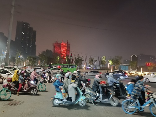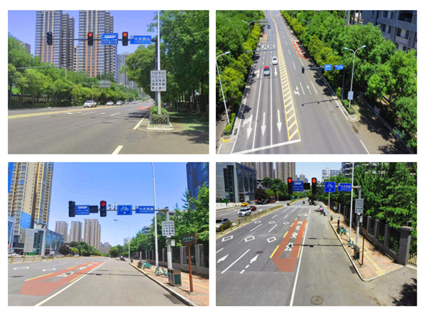 治理成效:通過(guò)對(duì)該交叉口的交通組織和信號(hào)配時(shí)同步優(yōu)化,該交叉口非機(jī)動(dòng)車通行效率與秩序得到了極大提升。且由于非機(jī)動(dòng)車對(duì)機(jī)動(dòng)車干擾減少,交叉口整體通行效率得到顯著提升,高峰時(shí)段由南向西左轉(zhuǎn)排隊(duì)長(zhǎng)度大大縮短。