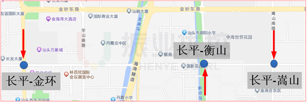 東海岸大道、阿里山路位于海岸新城區(qū),均為南北走向主干道,路段周邊分別有住宅小區(qū)與學(xué)校,是連接汕頭新老城區(qū)的重要路線(xiàn)。