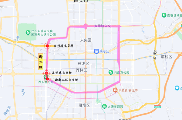 概況:西二環(huán)是西安城市快速路骨架路網(wǎng)的重要組成部分,南接南二環(huán)西段、北至大興立交,高架段保持雙向4車道通行,地面段保持雙向6-8車道,承擔(dān)著西安城西片區(qū)過境和對外交通流轉(zhuǎn)換樞紐功能。