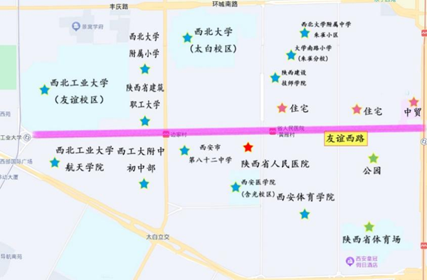 概況:友誼西路是西安市碑林區(qū)重要通勤道路之一,為三塊板道路,全線分布有西安市第八十二中學(xué)、西北工業(yè)大學(xué)附屬中學(xué)、西北工業(yè)大學(xué)、陜西省人民醫(yī)院等多所“醫(yī)校”,早晚高峰公眾出行密集。