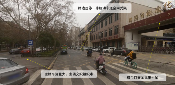 概況:陜西師范大學(xué)鳳凰城小學(xué)門前元朔大道為四塊板雙向六車道道路,上下學(xué)時(shí)段學(xué)生過街較為集中。