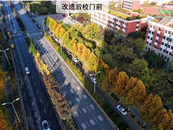 優(yōu)化效果:改造后過往車輛行車速度得到壓降,安全停車視距得到保障,學(xué)生過街秩序大幅改善。
