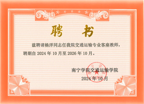 2024年10月,振業(yè)優(yōu)控椒醬團黃德楓、孫艷磊、楊洋、蒲明朋四位實戰(zhàn)專家正式受聘為南寧學(xué)院交通運輸學(xué)院專業(yè)客座教師。