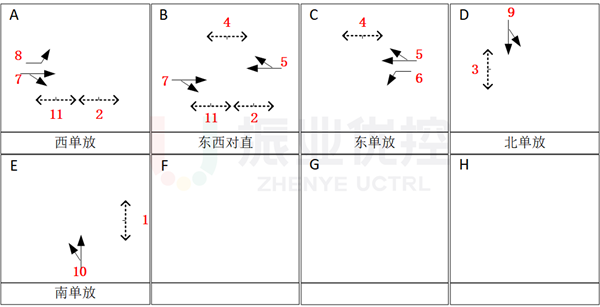 2.信控配時(shí)精細(xì)化:增加南向西左轉(zhuǎn)、東向西直行非機(jī)動(dòng)車專用放行相位,南向西左轉(zhuǎn)車流設(shè)置二次放行模式清空中央二次待行區(qū)排隊(duì)車輛,同時(shí)根據(jù)路口不同時(shí)段的交通特性重新細(xì)化時(shí)段,提升信號配時(shí)與交通流量的匹配度。