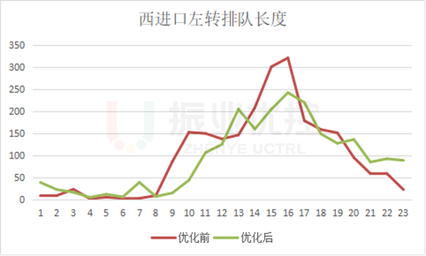西進(jìn)口左轉(zhuǎn)排隊(duì)長度大幅縮短,有效解決對直行、掉頭車輛通行的影響,路口通行效率得到顯著提升。