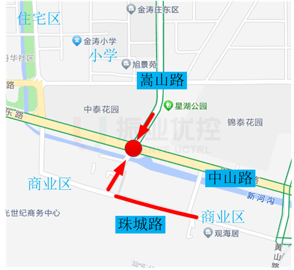 中山-嵩山路口位于汕頭市龍湖區(qū)中山路與嵩山路交匯處,中山路全長8公里,是進(jìn)出汕頭城區(qū)的必經(jīng)之路;嵩山路往北聚集各大住宅區(qū)與學(xué)校,往南聚集商務(wù)中心、金融中心,路口各進(jìn)口全天車流較大。
