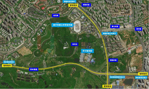 閉幕式于11月15日下午在青秀山風(fēng)景區(qū)壯錦廣場舉行,14時(shí)起對青秀山風(fēng)景區(qū)西門片區(qū)實(shí)施管控,禁止閉幕式無關(guān)車輛由鳳嶺南路進(jìn)入。技術(shù)團(tuán)隊(duì)通過視頻監(jiān)控實(shí)時(shí)巡查周邊繞行路段交通情況,按車流通行需求,增加鳳嶺南青環(huán)路口東進(jìn)口、青山英華路口北進(jìn)口的通行時(shí)間,確保繞行車流通行順暢。
